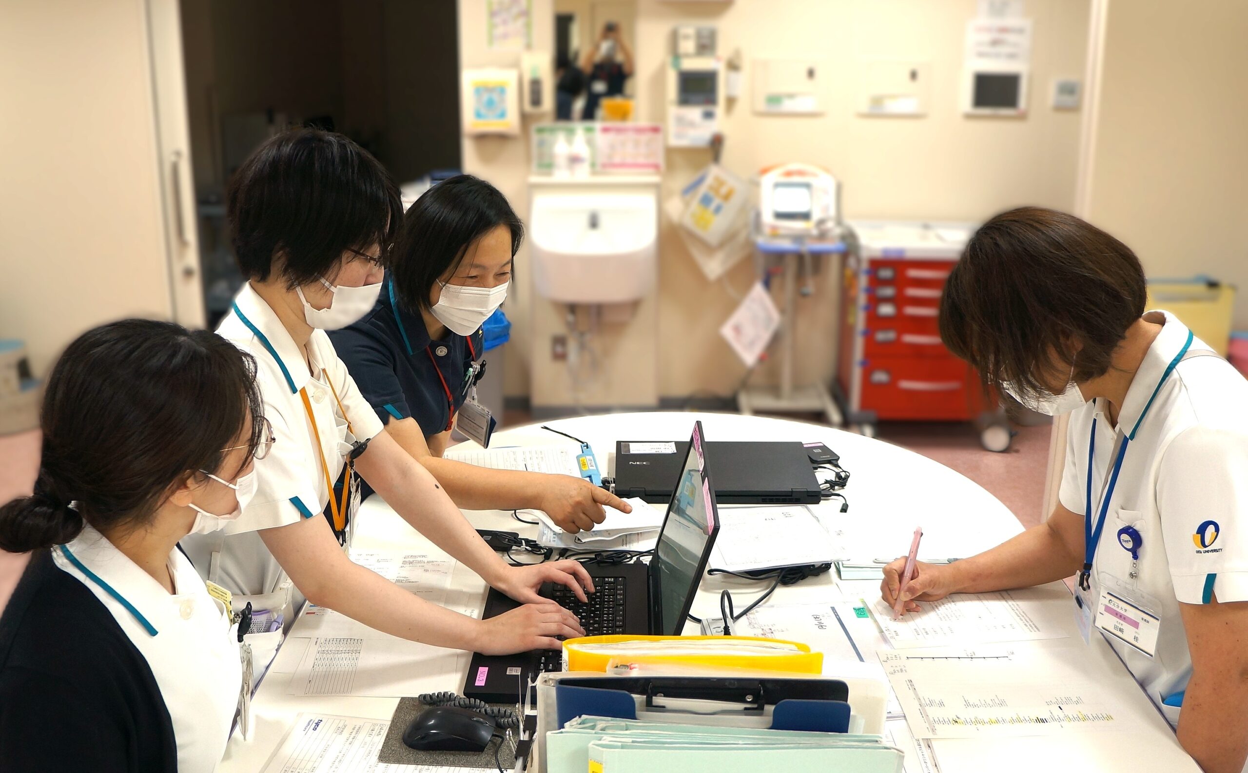 電子カルテシステムを活用した情報管理で、効率化された医療と看護が提供できるように取り組んでいます。関連する部門やチームと協働した新たなシステムの導入や入院から退院までの治療・検査のスケジュールが計画されたクリニカルパスの新規作成と改訂を支援することで、患者さんへ標準化された質の高い医療と看護が提供できるようにします。